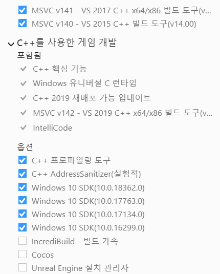 아래는 설치시에 제가 선택했던 옵션입니다.