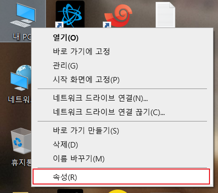 1) 바탕화면의 [내 컴퓨터] (or [내 PC]) 마우스 왼쪽 클릭